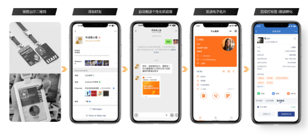 面对展会现场混杂的人群,会后再逐一筛选无疑是耗时耗力的繁琐工作。借助企业微信+CDP 这套流程,能让线索筛选自动化: